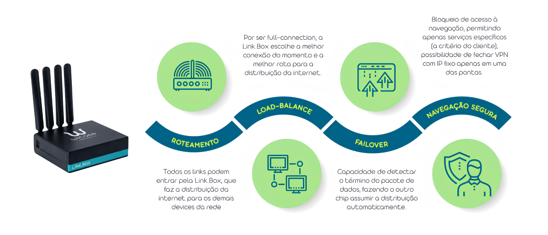 A mais nova solução full-connection da WiCorp, desenvolvida para suportar múltiplas conexões de dados: Banda Larga, Link Dedicado e 4G/5G.